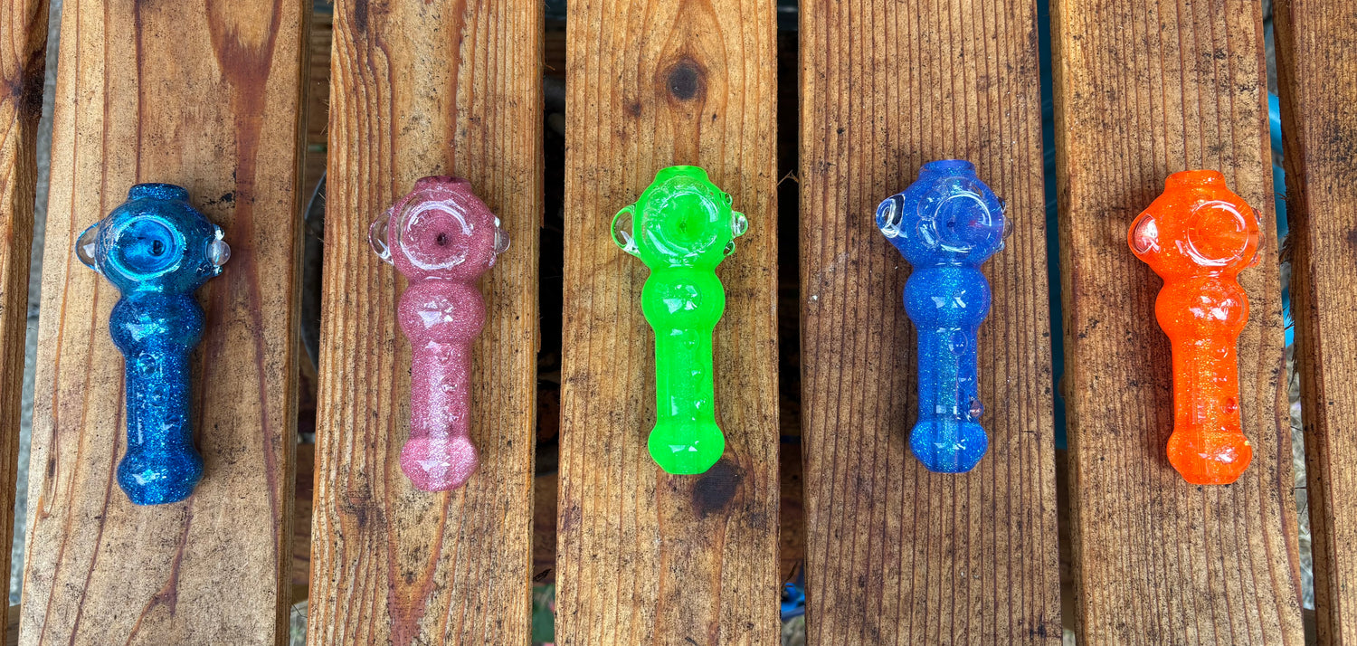 Freeze-a-bowl patented construction let's you freeze this pipe for icy cold rips. When not in use, be mezmerized by the swirling glitter when it catches the light.
