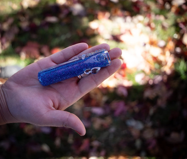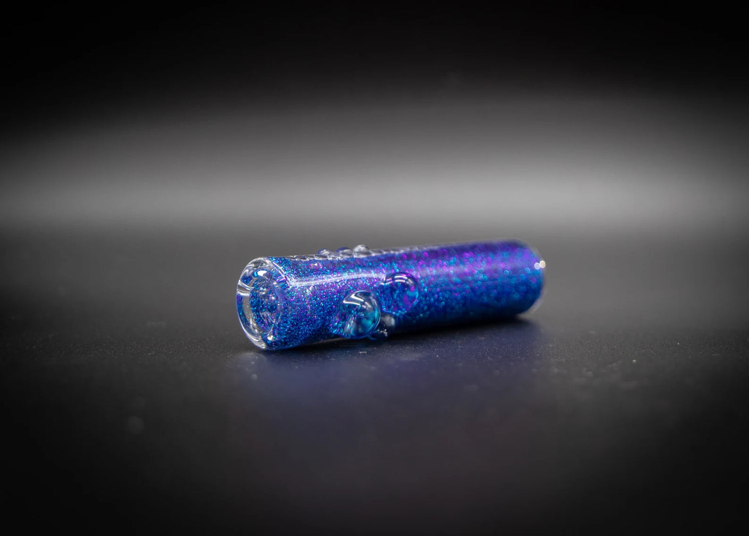 Created at GLASS LAB in Oregon, this premium Chillum Bat is packed with features. Put it in the freezer for 15-20 minutes before your session for icy cold rips. The motion of the glitter is mesmerizing, and the straight shaft makes it easy to clean!